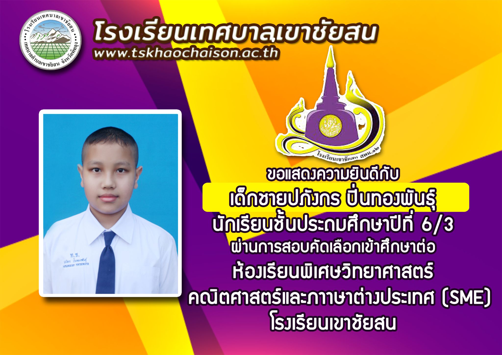 ขอเเสดงความยินดีกับ เด็กชายปภังกร ปิ่นทองพันธ์