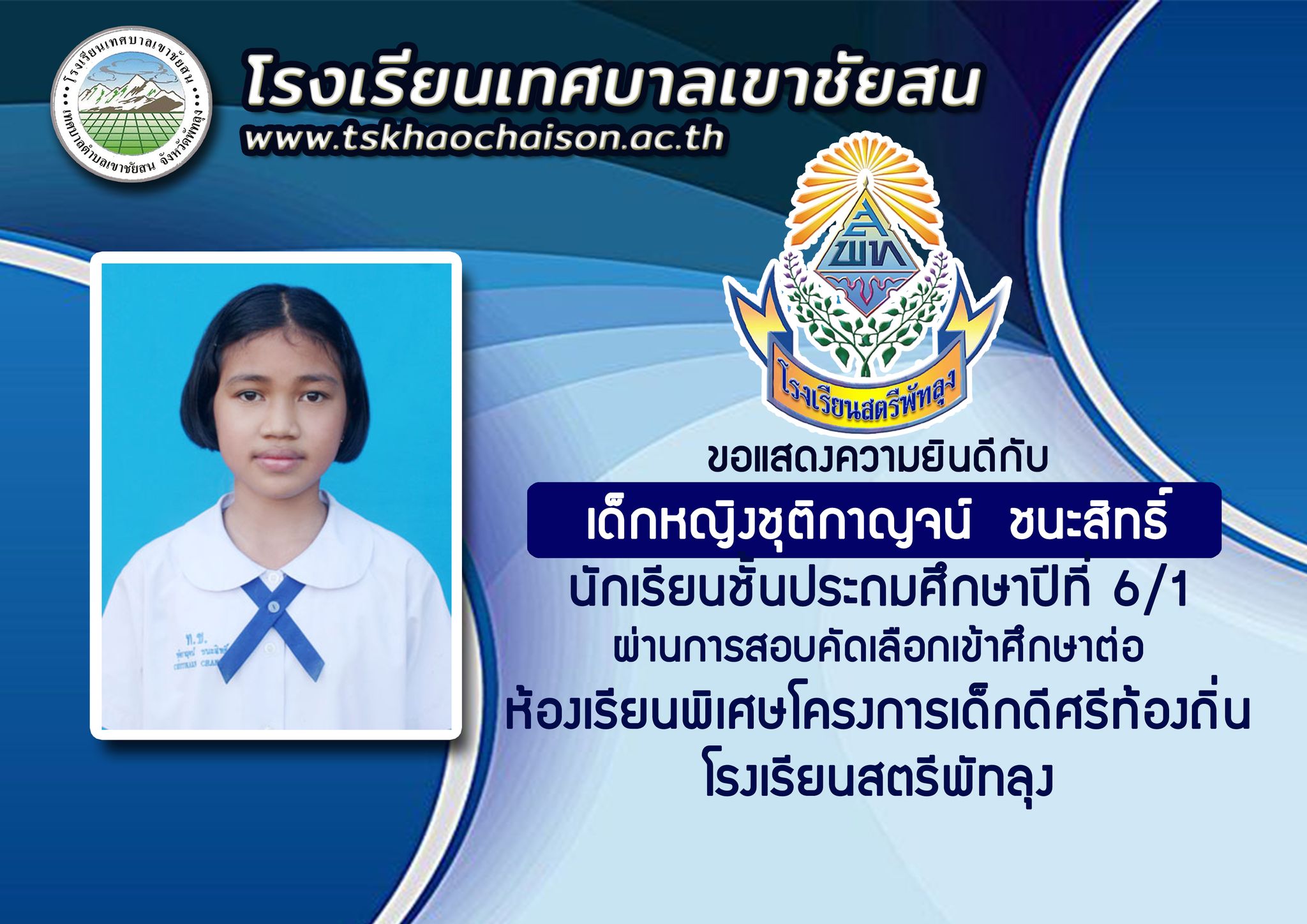 ขอเเสดงความยินดีกับ เด็กหญิงชุติกาญจน์ ชนะสิทธิ์