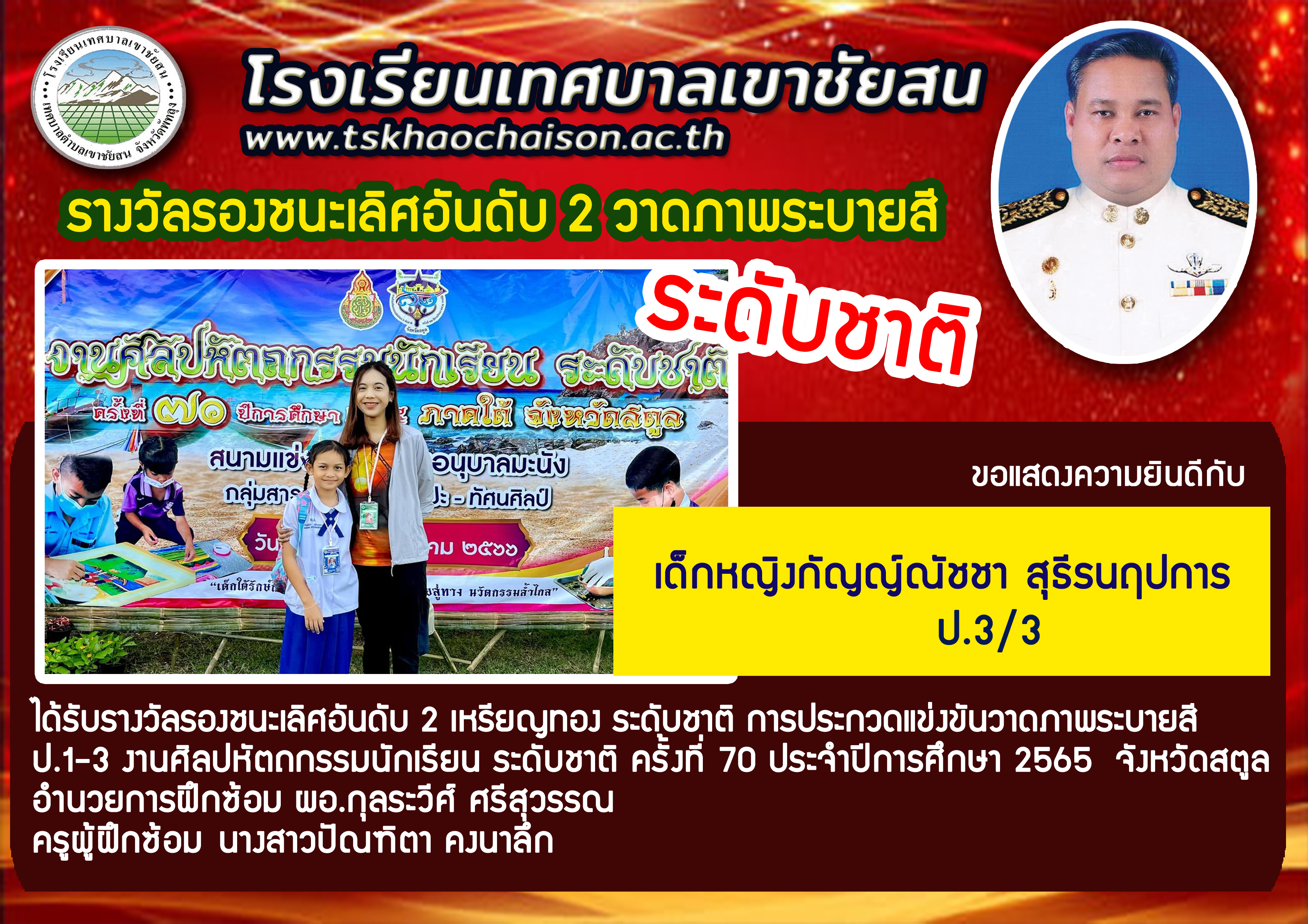 รางวัลรองชนะเลิศอันดับ2 วาดภาพระบายสี งานศิลปะหัตกรรมนักเรียน ระดับชาติ ครั้งที่70