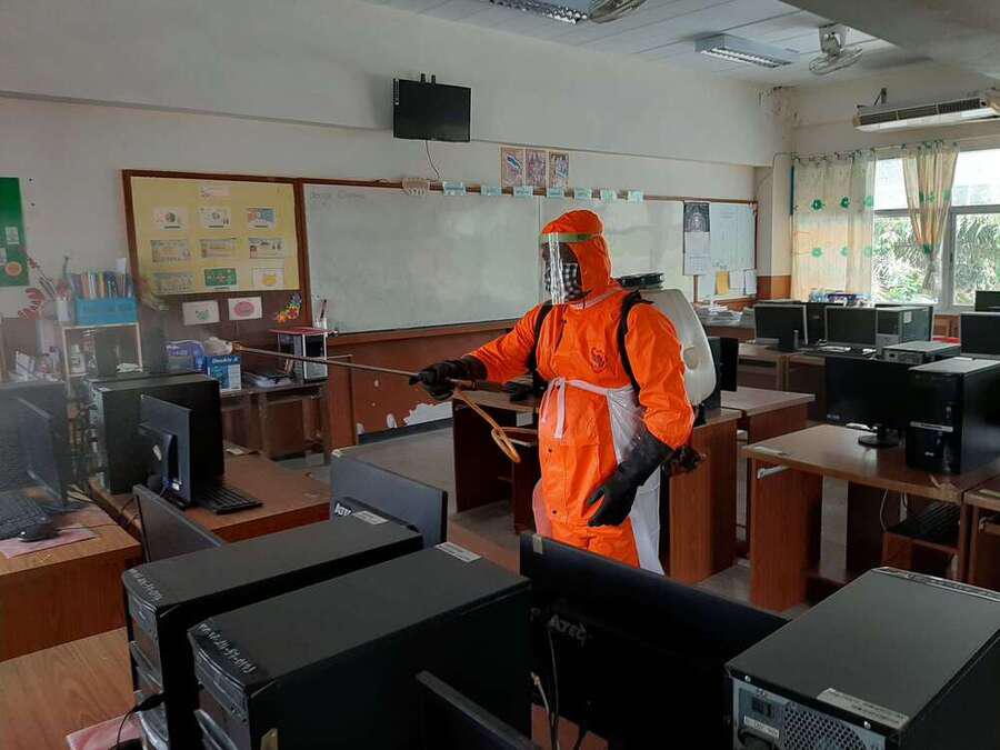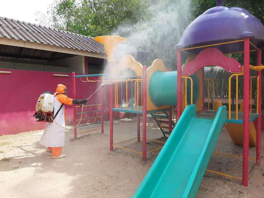 วันศุกร์ที่ 10 เมษายน 2563 เวลา14.00น. เทศบาลตำบลเขาชัยสน โดยนายสมบูรณ์ เหล่าทอง นายกเทศมนตรี นายวิระพล ชูโชติ รก.ผอ.สาธารณสุขฯ พร้อมด้วยพนักงานเทศบาล ลงพื้นที่ โรงเรียนเทศบาลเขาชัยสน พ่นยาฆ่าเชื้อไวรัส แบคทีเรีย บริเวณสนามเด็กเล่น ห้องเรียน และบริเวณโดยรอบอาคารเรียน S:0