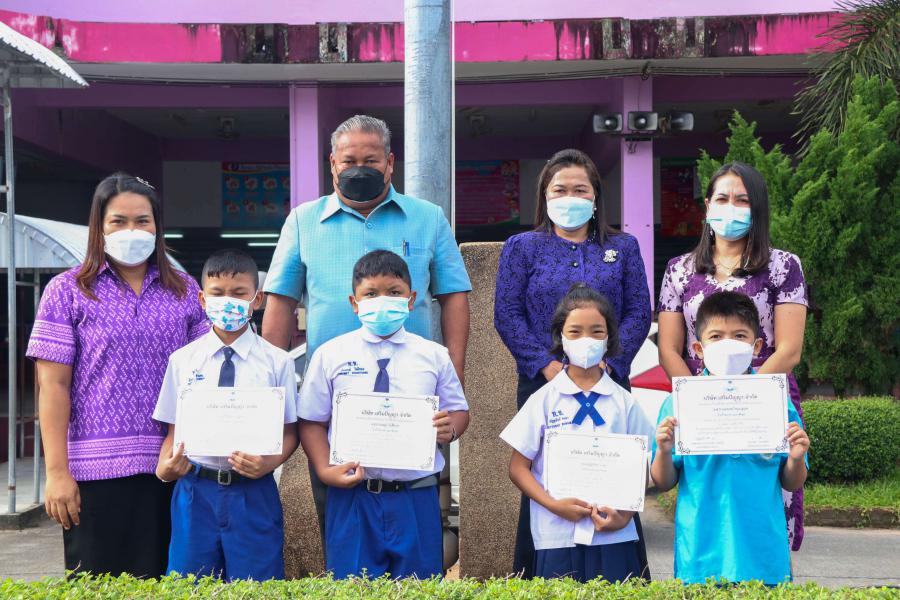 วันที่ 27 พฤษภาคม 2565 เวลา 08.00น. นายสมบูรณ์ เหล่าทองนายกเทศมนตรี มอบเกียรติบัตรให้กับนักเรียนที่มีผลงานดีเด่นดังนี้ 1. รางวัล โครงการประเมินและพัฒนาสู่ความเป็นเลิศทางคณิตศาสตร์และวิทยาศาสตร์ (TEDET) (Thailand Educational Development and Evaluation Tests) พ.ศ. 2564 2. รางวัลชมเชย การประกวดสวดมนต์หมู่สรรเสริญพระรัตนตรัย ทำนองสรภัญญะประเภททีม 5 คน ระดับภาคคณะสงฆ์ ภาค 18 ระดับประถมศึกษา ประเภททีมหญิงล้วน 3. รางวัลชนะเลิศ การประกวดสวดมนต์หมู่สรรเสริญพระรัตนตรัย ทำนองสรภัญญะประเภททีม 5 คน ระดับภาคคณะสงฆ์ ภาค 18 ระดับประถมศึกษา ประเภททีมชายล้วน 4. รางวัลเหรียญเงิน การแข่งขันทางวิชาการ ระดับนานาชาติ ประจำปี พ.ศ.2565 รอบแรก ระดับพื้นที่การศึกษา โครงการพัฒนาคุณภาพการเรียนรู้สู่สากล วิชาคณิตศาตร์ ระดับประถมศึกษา 5. คะแนนยอดเยี่ยม อันดับที่ 1 ของจังหวัดพัทลุง ระดับชั้นประถมศึกษาปีที่2 วิชาคณิตศาตร์ ครั้งที่ 34 ประจำปีการศึกษา 2564 บริษัท เสริมปัญญา จำกัด 6. คะแนนยอดเยี่ยม อันดับที่ 1 ของจังหวัดพัทลุง ระดับชั้นประถมศึกษาปีที่3 วิชาคณิตศาตร์ ครั้งที่ 34 ประจำปีการศึกษา 2564 บริษัท เสริมปัญญา จำกัด 7. คะแนนยอดเยี่ยม อันดับที่ 1 ของจังหวัดพัทลุง ระดับชั้นประถมศึกษาปีที่2 วิชาวิทยาศาตร์ ครั้งที่ 34 ประจำปีการศึกษา 2564 บริษัท เสริมปัญญา จำกัด 8. คะแนนยอดเยี่ยม อันดับที่ 1 ของจังหวัดพัทลุง ระดับชั้นประถมศึกษาปีที่3 วิชาวิทยาศาตร์ ครั้งที่ 34 ประจำปีการศึกษา 2564 บริษัท เสริมปัญญา จำกัด 9. คะแนนยอดเยี่ยม อันดับที่ 1 ของจังหวัดพัทลุง ระดับชั้นประถมศึกษาปีที่5 วิชาวิทยาศาตร์ ครั้งที่ 34 ประจำปีการศึกษา 2564 บริษัท เสริมปัญญา จำกัด 10. คะแนนยอดเยี่ยม อันดับที่ 1 ของจังหวัดพัทลุง ระดับชั้นประถมศึกษาปีที่3 การทดสอบความรู้ General English proficiency Test ครั้งที่ 34 ประจำปีการศึกษา 2564 บริษัท เสริมปัญญา จำกัด 11. คะแนนยอดเยี่ยม อันดับที่ 1 ของจังหวัดพัทลุง ระดับชั้นประถมศึกษาปีที่4 การทดสอบความรู้ General English proficiency Test ครั้งที่ 34 ประจำปีการศึกษา 2564 บริษัท เสริมปัญญา จำกัด 12. คะแนนยอดเยี่ยม อันดับที่ 1 ของจังหวัดพัทลุง ระดับชั้นประถมศึกษาปีที่5 การทดสอบความรู้ General English proficiency Test ครั้งที่ 34 ประจำปีการศึกษา 2564 บริษัท เสริมปัญญา จำกัด S:0