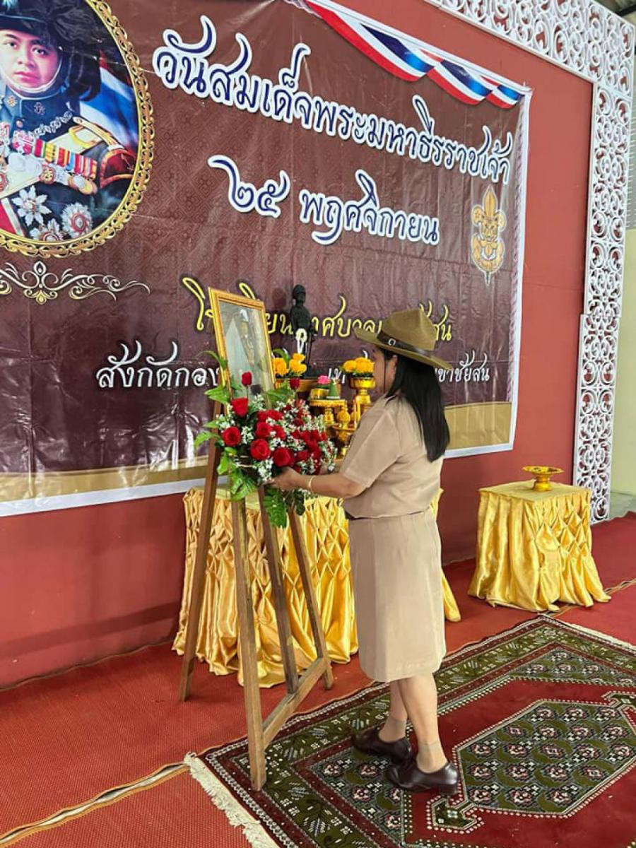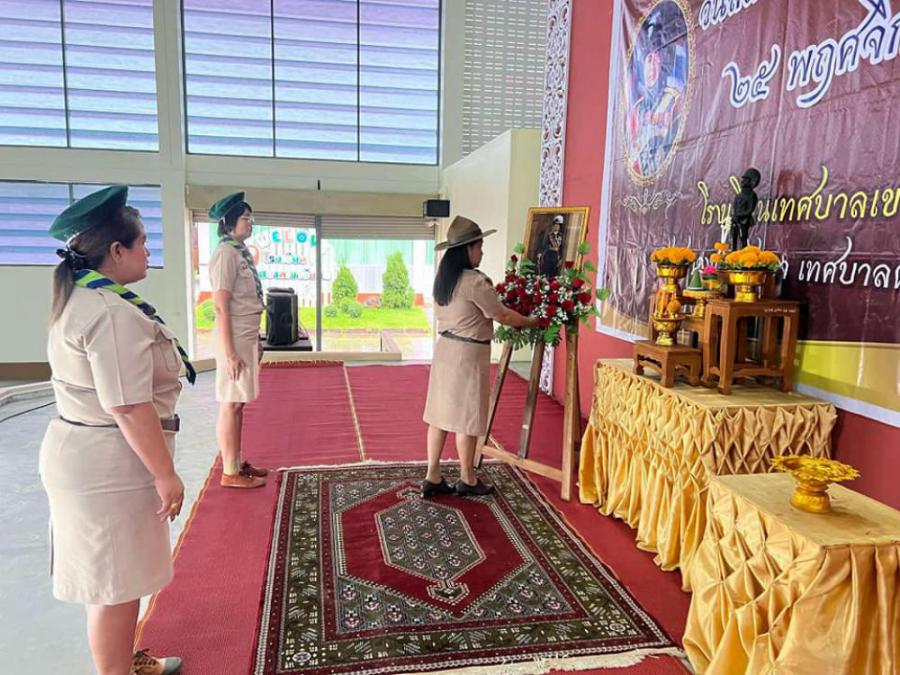 วันจันทร์ ที่ ๒๕ เดือนพฤศจิกายน พ.ศ.๒๕๖๗ นางกุลระวีศ์ ศรีสุวรรรณ ผู้อำนวยการสถานศึกษา นำผู้กำกับ และลูกเสือ-เนตรนารี จำนวน ๒๕๘ คน เข้าร่วมพิธีวางพวงมาลาและถวายราชสดุดี เนื่องในวันเสด็จสวรรคตของสมเด็จพระมหาธีรราชเจ้า พระบาทสมเด็จพระมงกุฎเกล้าเจ้าอยู่หัว พระผู้พระราชทานกำเนิดลูกเสือไทย S:0
